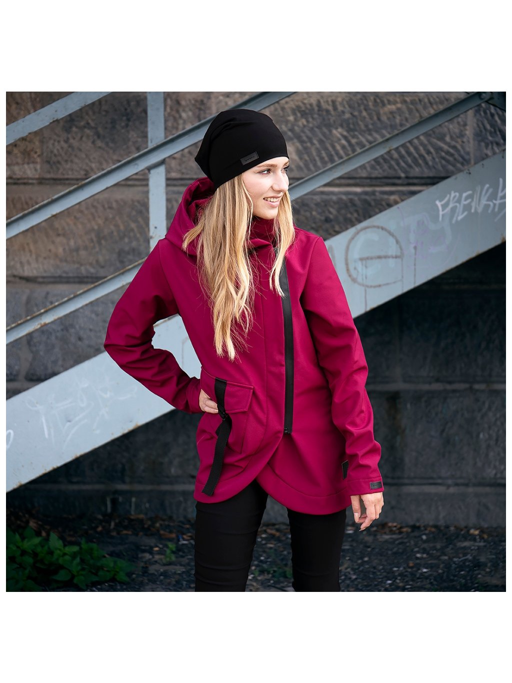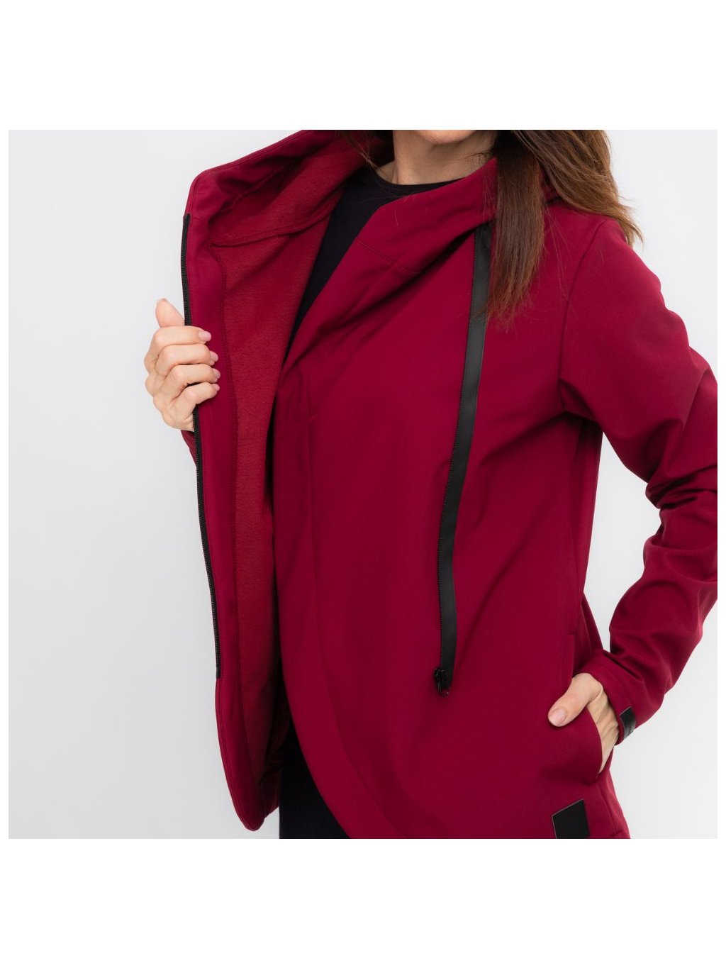 Dámský krátký vínový softshell kabátek