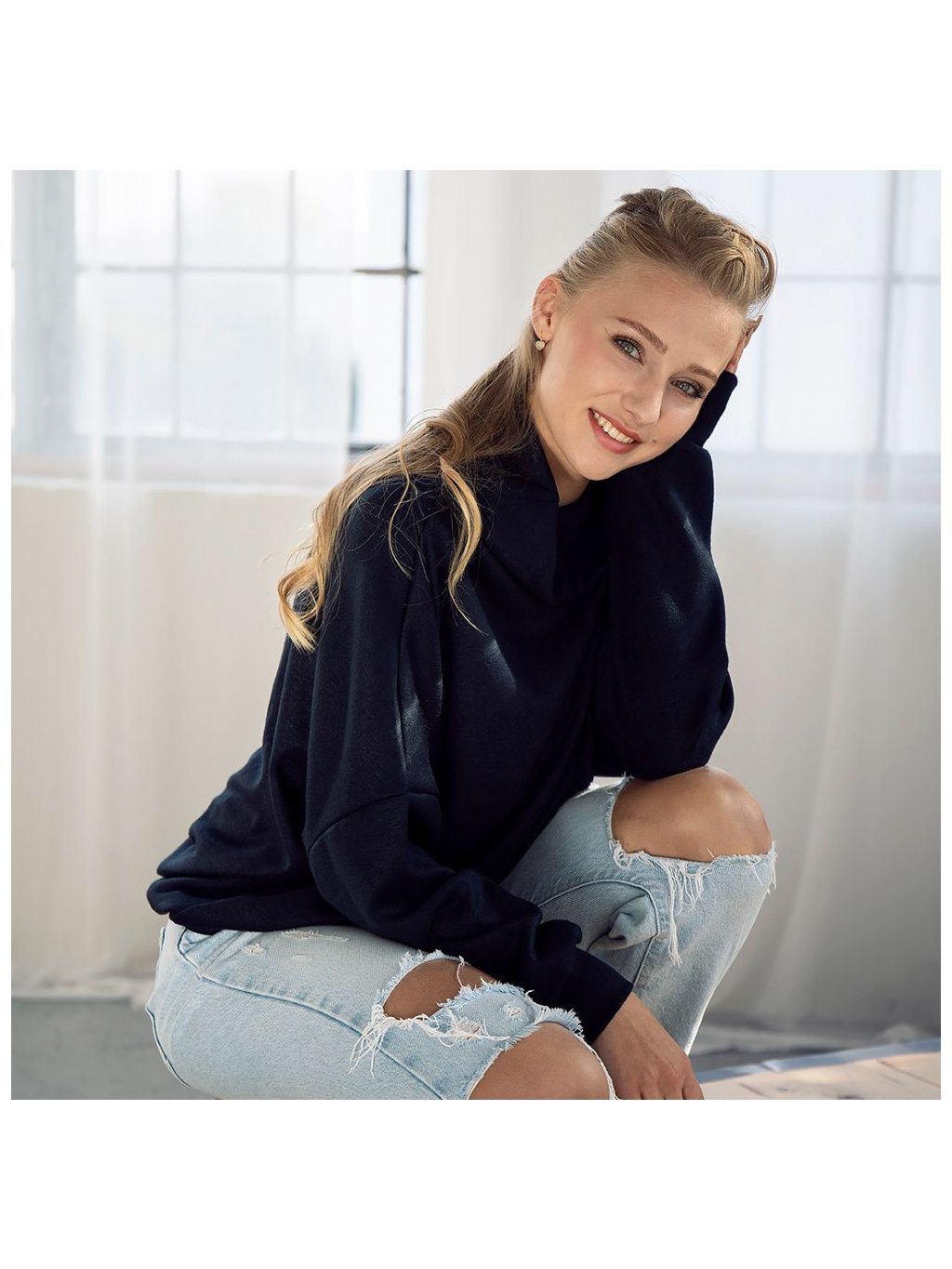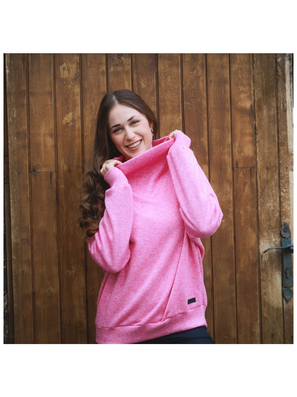 Dámský růžový svetr s rolákem