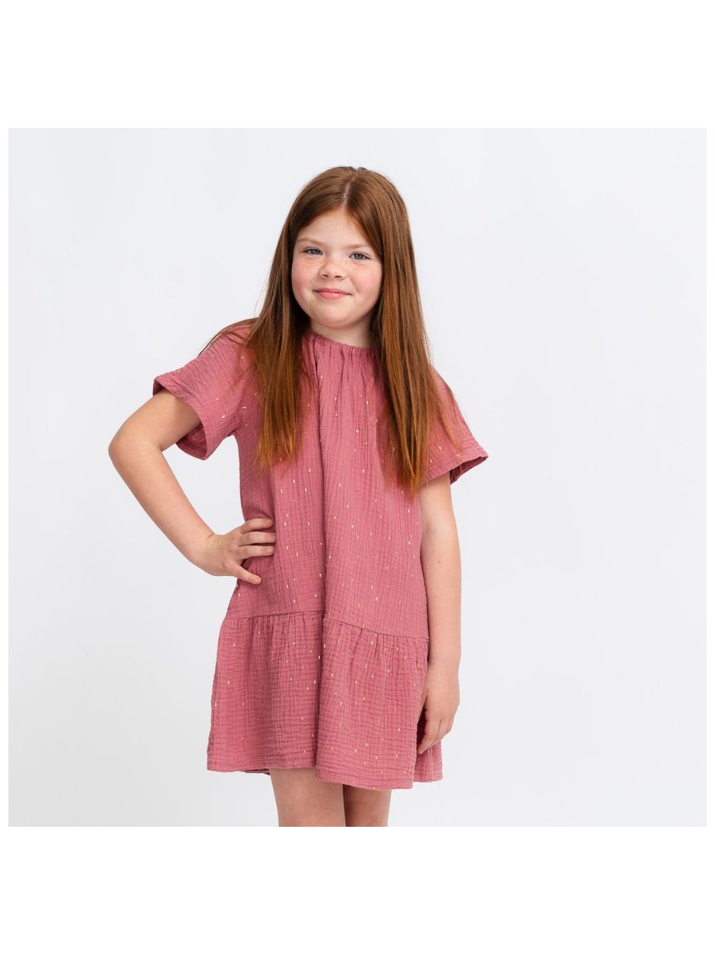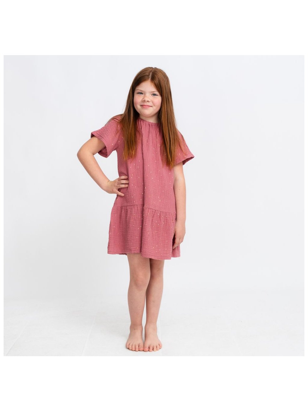 Dětské starorůžové mušelínové šaty s volánem