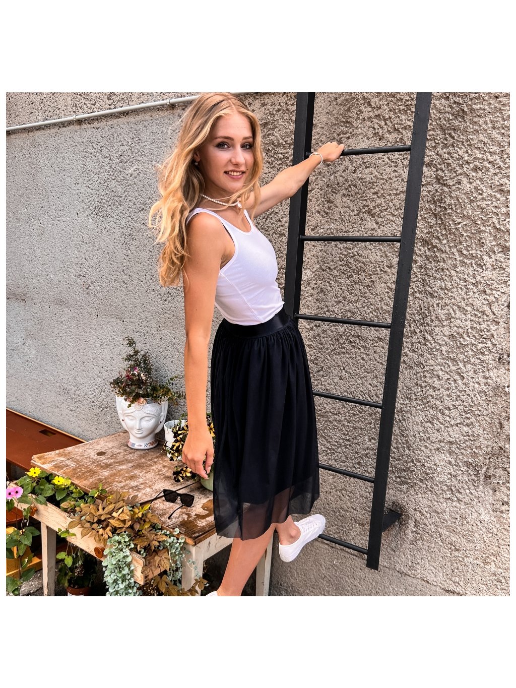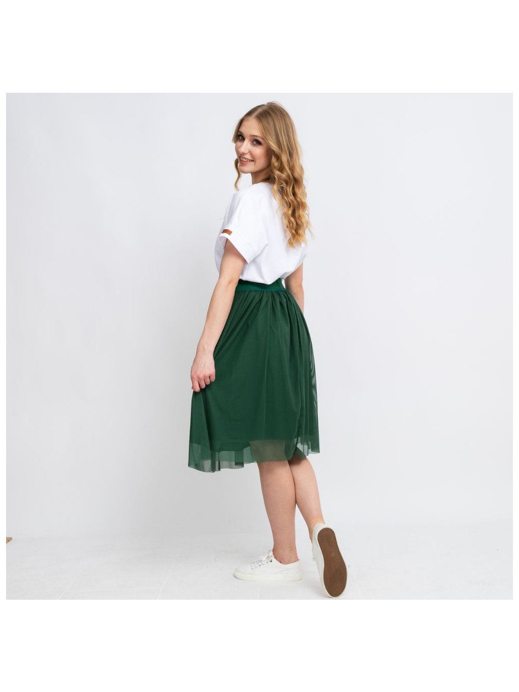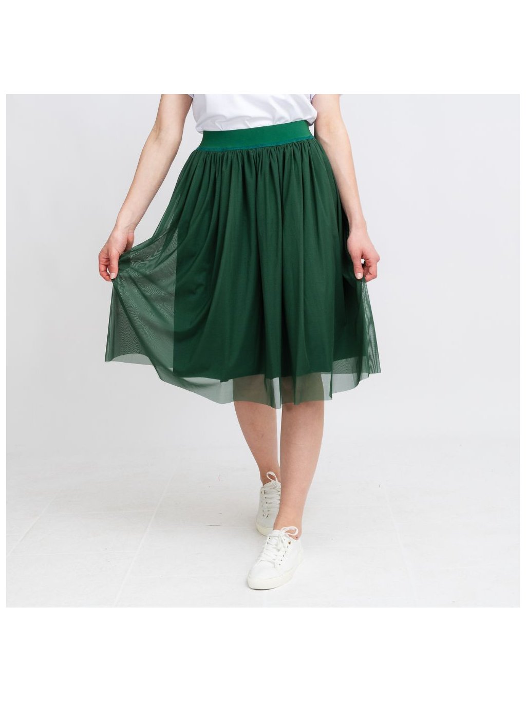 Krátká zelená tylová řasená sukně