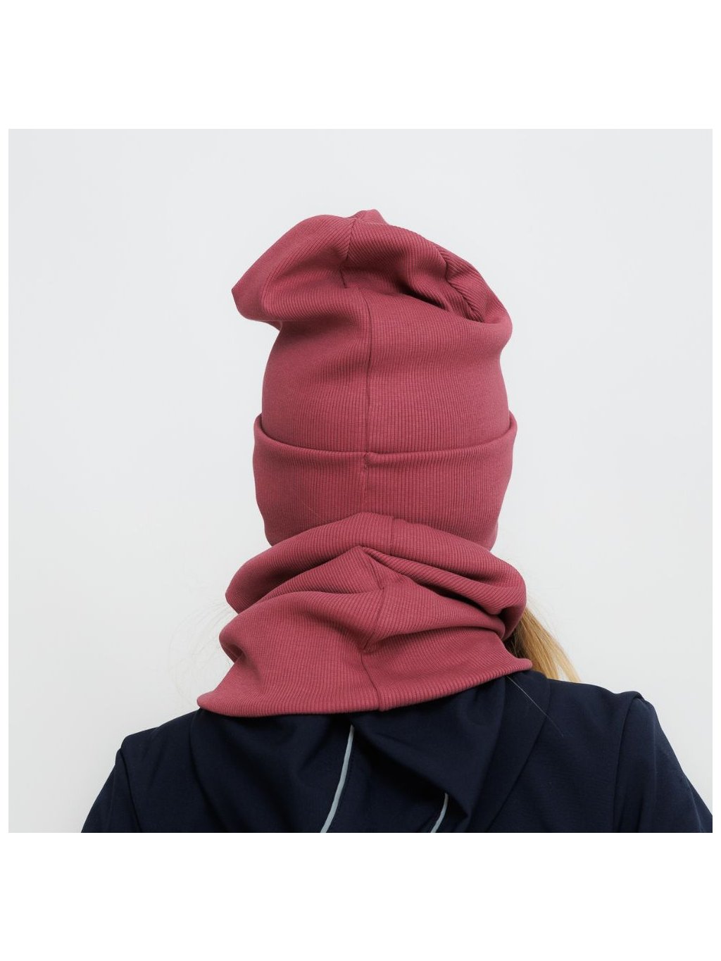Žebrovaná čepice se dá skvěle kombinovat s žebrovanými nákrčníky.